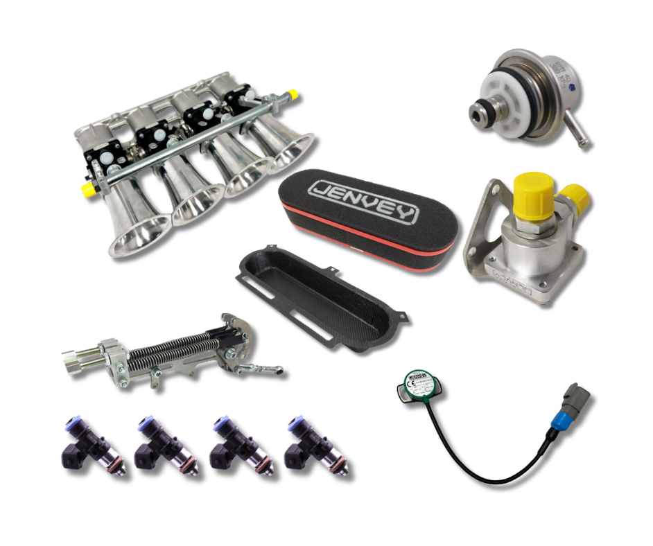 The Jenvey Ford Duratec 2.0L electronic fuel injection (EFI) individual throttle body kit (ITB) has been designed and developed in house to significantly increase performance and throttle response of your engine leading to a reduction in lap times. This engine was originally fitted into the Fiesta ST150, Mondeo, Focus, Cmax and Eco-sport.  Designed in conjunction with Mazda it is also available as the Mazda MZR engine and used in the Mazda 3 and MX5