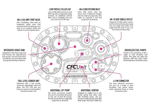 The Nuke Performance CFC Unit, specially developed for ATL and Fuel Safe fuel cells, with integrated fuel surge tank and fuel pump hanger. Fits the most common fuel cells for your every need.