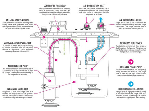The next-gen and the perfect solution for a modern, lightweight, safe, and functional fuel setup for serious builds for track days, time attack, drifting, or any other type of motorsports. Eliminates fuel starvation during racing.