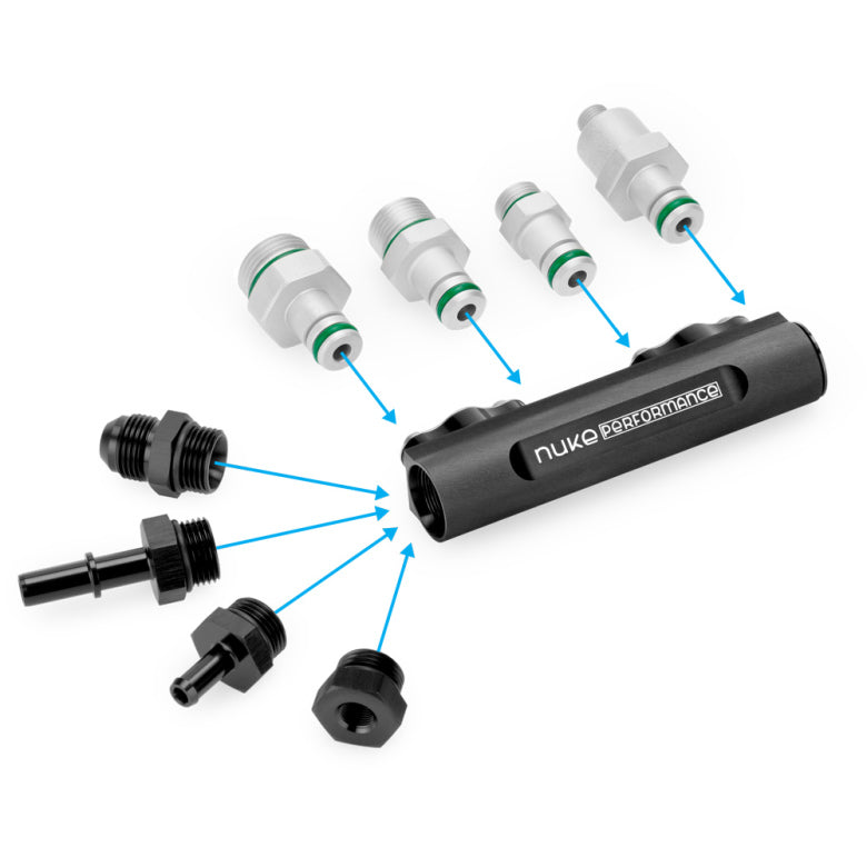 Nuke Performance Fuel Log 4-port collector, AN-8 ORB includes :
