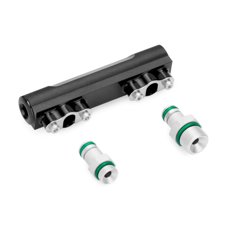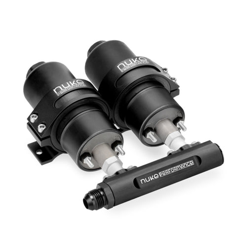 The fuel log from Nuke Performance makes it easy to combine two in-line fuel pumps into one single AN-8 ORB outlet. You can also choose a single fuel pump that routes back into an in-line fuel filter, making this a space-efficient and safe setup.