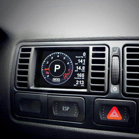 The vehicle-specific CANchecked MFD28 Gen2 for your VW Golf MK3 - perfectly integrated and all data always in view